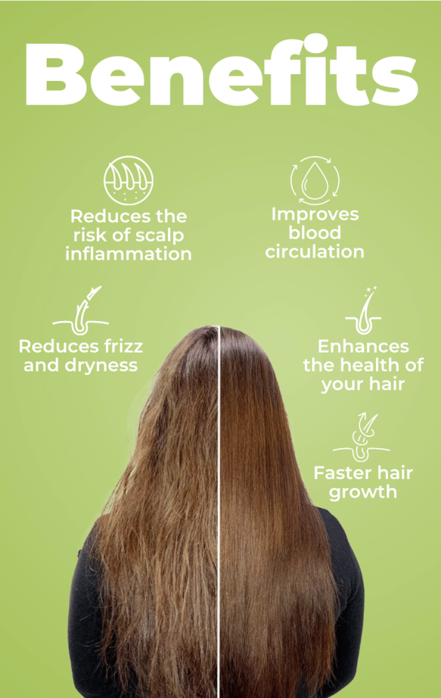 يعزز تدفق الدم في فروة الرأس، ويدعم البصيلات بالأكسجين والمغذيات، مما يساعد على تقوية الشعر وزيادة كثافته.
